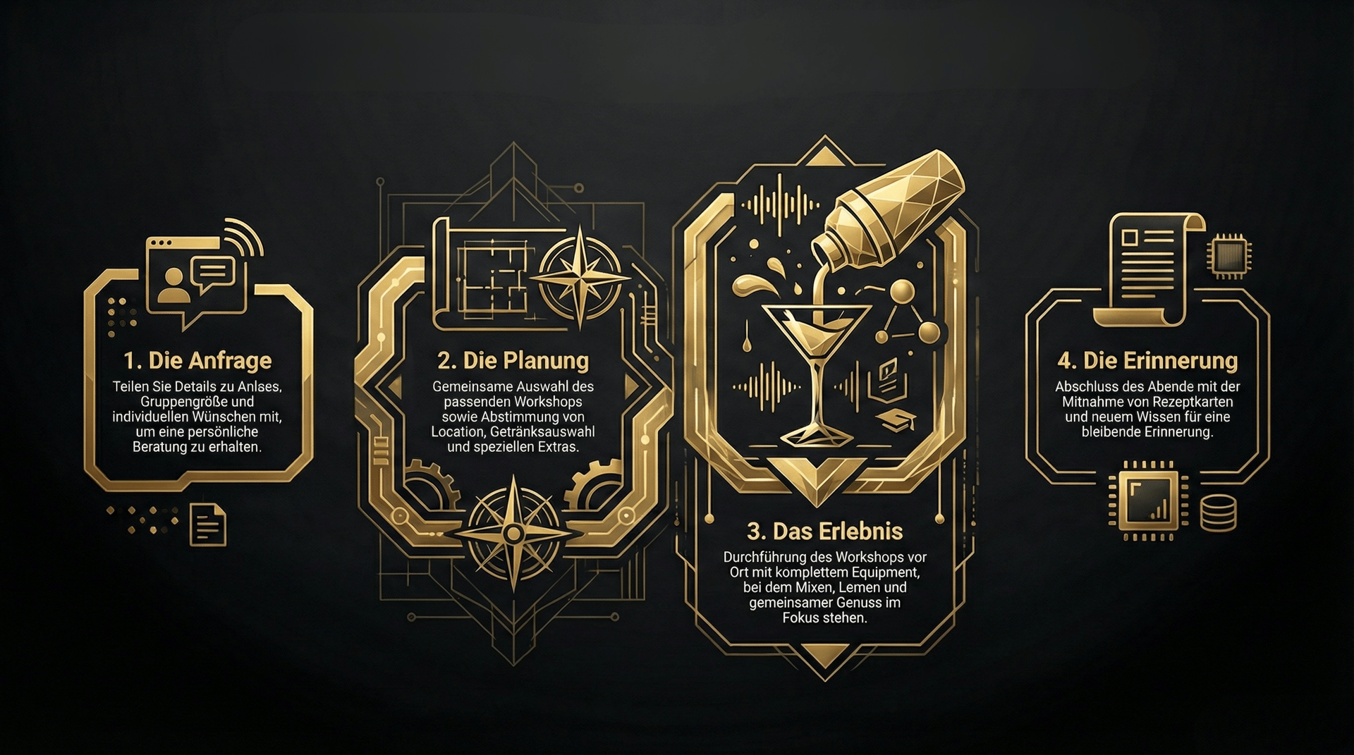 Unsere Cocktail Workshops finden flexibel bei Ihnen vor Ort oder an einer Location Ihrer Wahl statt und sorgen für ein besonderes Erlebnis für Sie und Ihre Gäste.